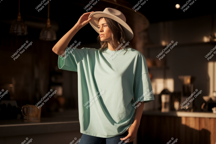 Light Fashion T-shirt Clothing Casual Mockup Apparel Woman Blue Hat