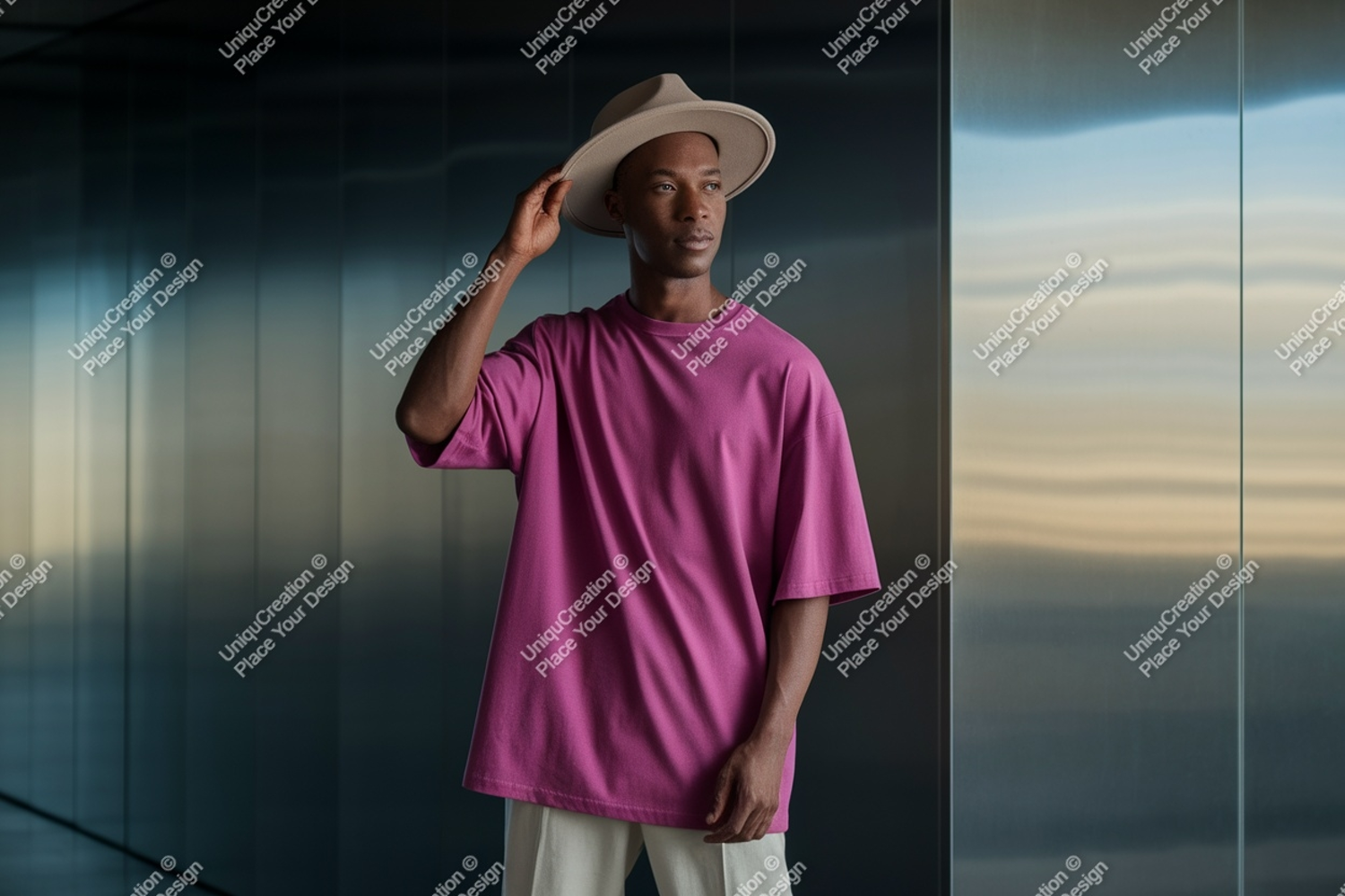 Fashion Man Style Shirt Pink Clothing Mockup Hat Portrait T