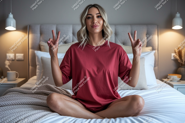Sign Casual Mockup Woman Peace Home Relaxation Indoor Comfortable Bedroom