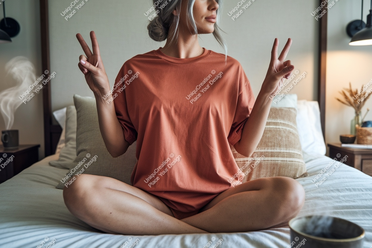Shirt Sign Woman Peace Sitting Bed T Relaxed Bedroom Terracotta