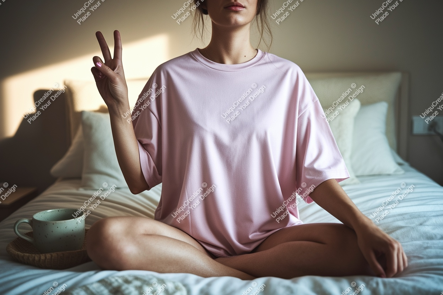 Light Shirt Sign Pink Woman Peace Meditation Morning Relaxed Bedroom