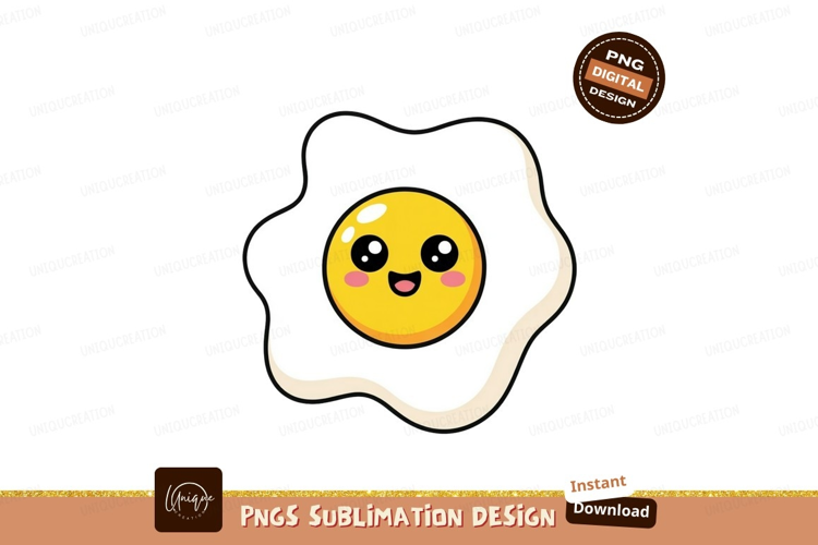 Happy fried egg character yellow white example image 1