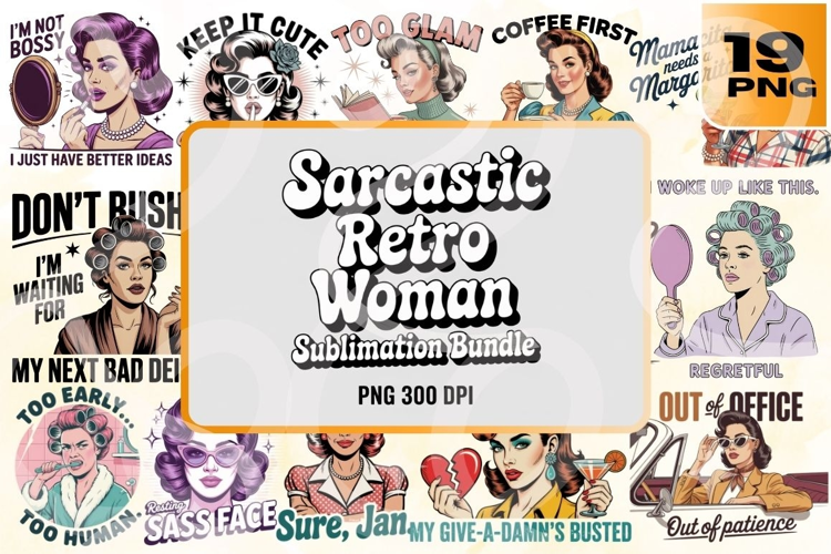 - Introduction: Add some vintage sass to your creative projects with the "Sarcastic Retro Woman Sublimation Bundle." This collection features 19 humorous, retro-inspired designs with a sassy twist, perfect for t-shirts, mugs, home décor, and more. If you're a fan of classic pin-up style with a sarcastic flair, this bundle is for you!