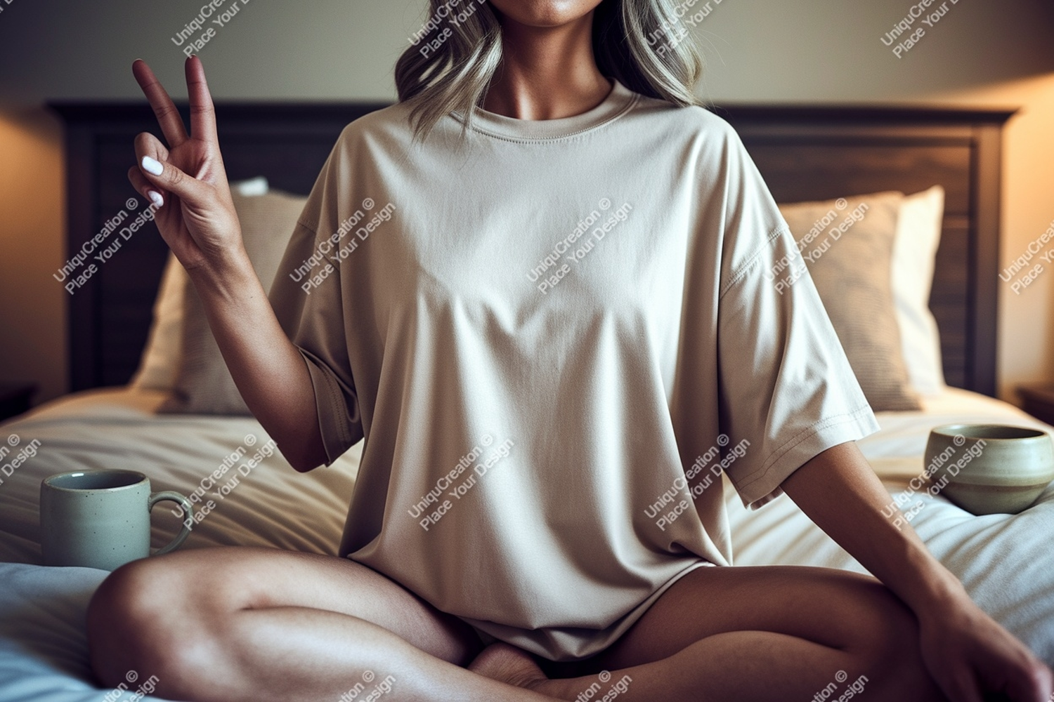 Sign T-shirt Casual Mockup Woman Peace Beige Mug Relaxed Bedroom