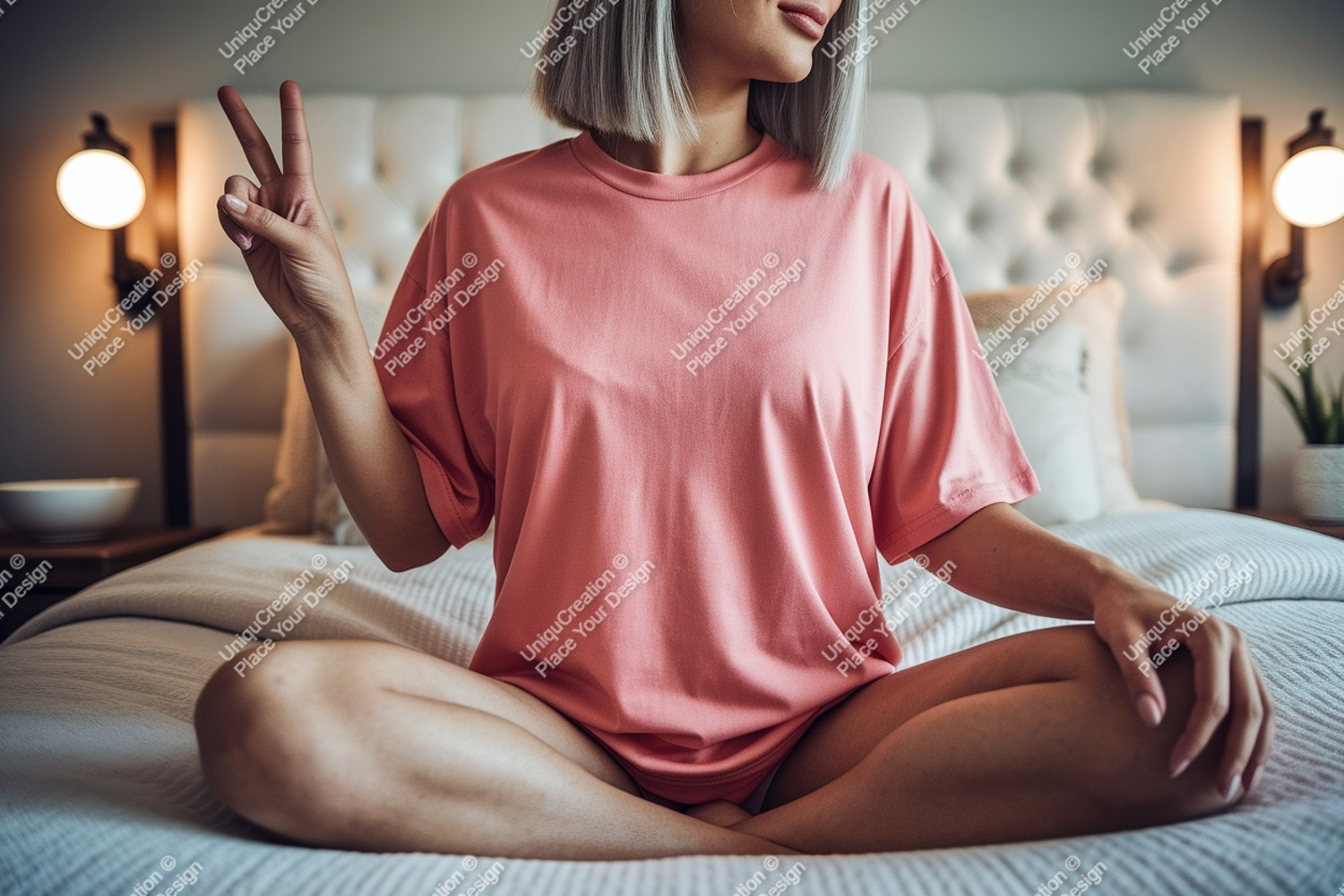 Shirt Sign Pink Interior Woman Peace Bed T Gesture Bedroom