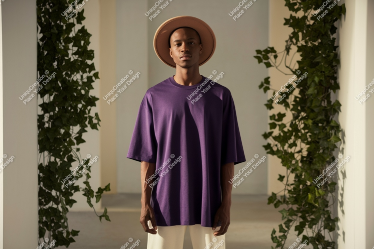 Fashion Man Style Shirt Clothing Mockup Purple Hat Portrait T