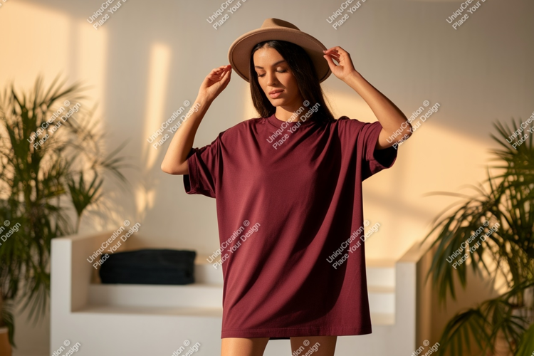 Fashion Style Shirt Clothing Casual Apparel Woman Hat T Maroon