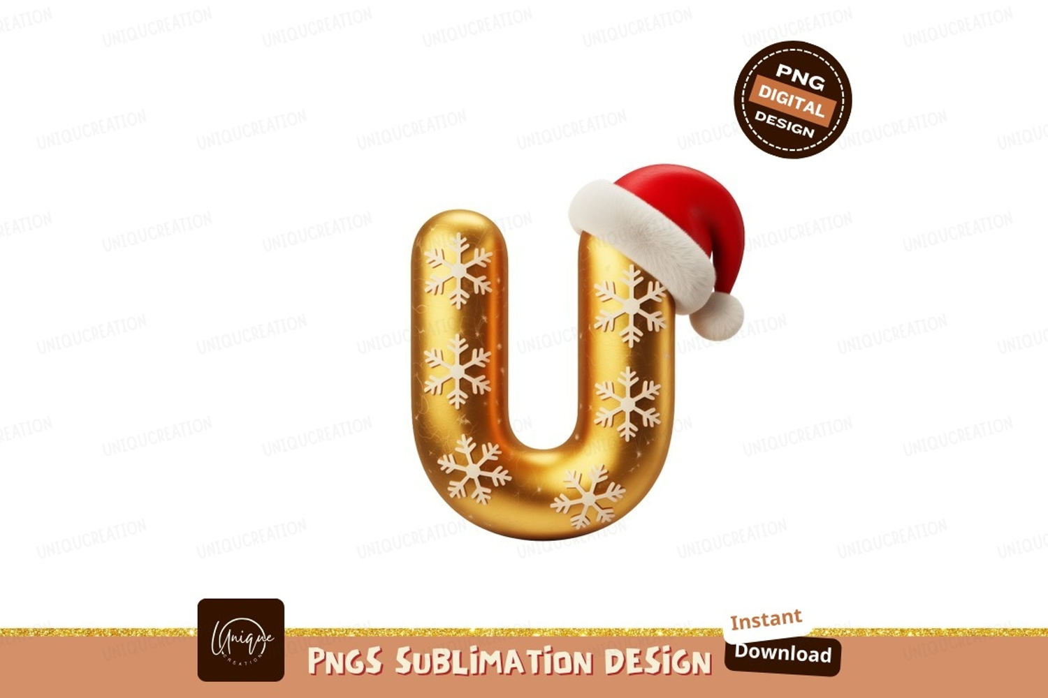 Similar Design Products to Golden letter U with snowflakes and Santa hat white