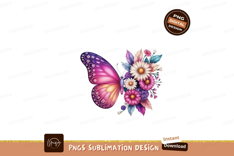 Pink butterfly with floral arrangement purple orange example image 1