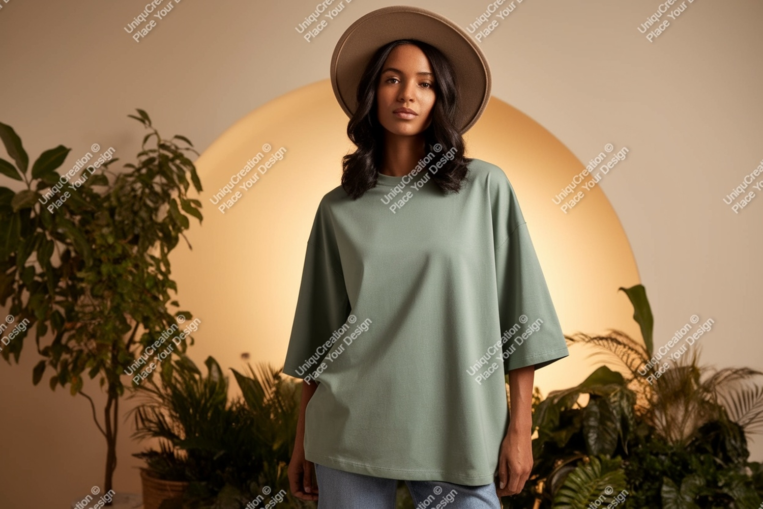 Fashion Shirt Casual Green Mockup Woman Hat Plants T Indoor