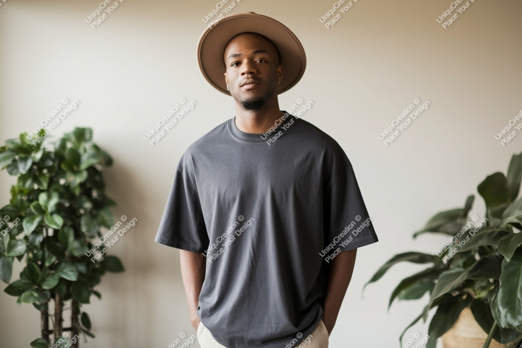 Fashion Man Shirt Casual Mockup Studio Hat Portrait T Indoor