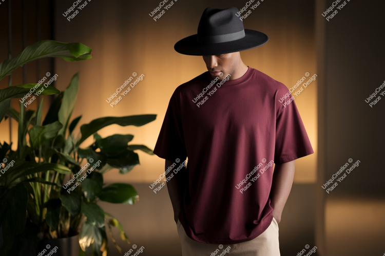 Man Black Shirt Mockup Plant Hat T Indoor Maroon