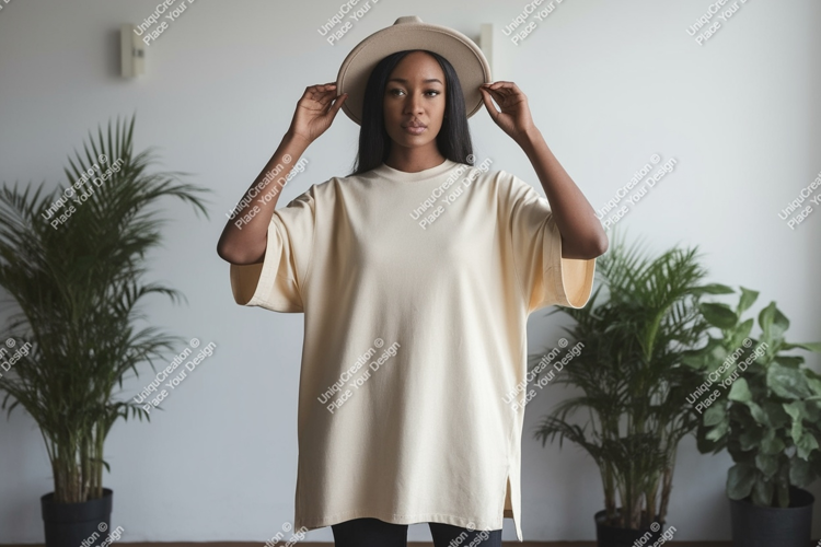 Fashion Shirt Casual Mockup Woman Hat Cream Plants T Indoor