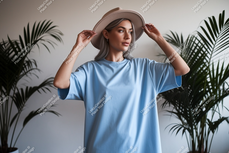 Fashion Style Shirt Casual Mockup Woman Blue Hat T Modeling