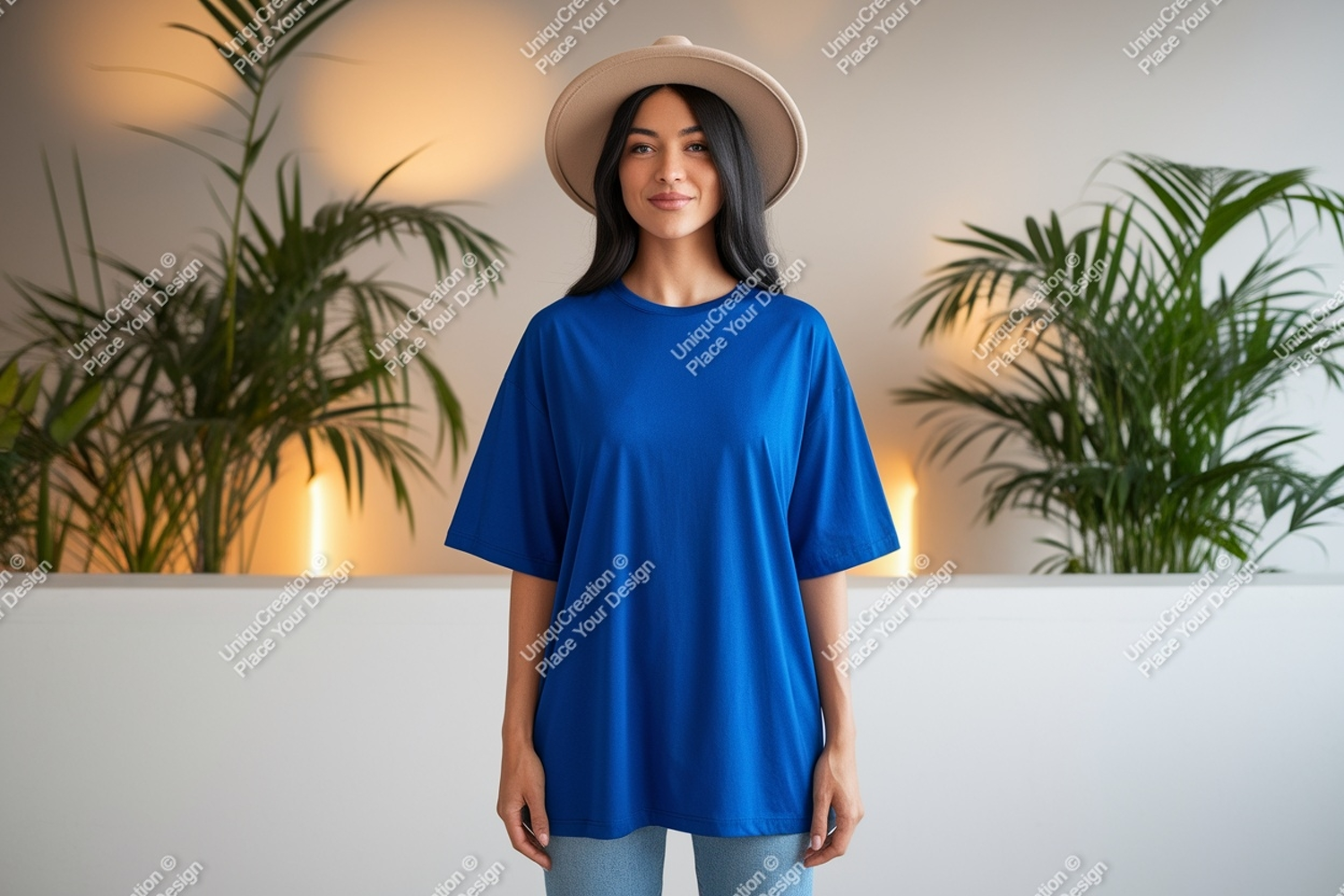 Shirt Mockup Woman Blue Hat Plants T Indoor