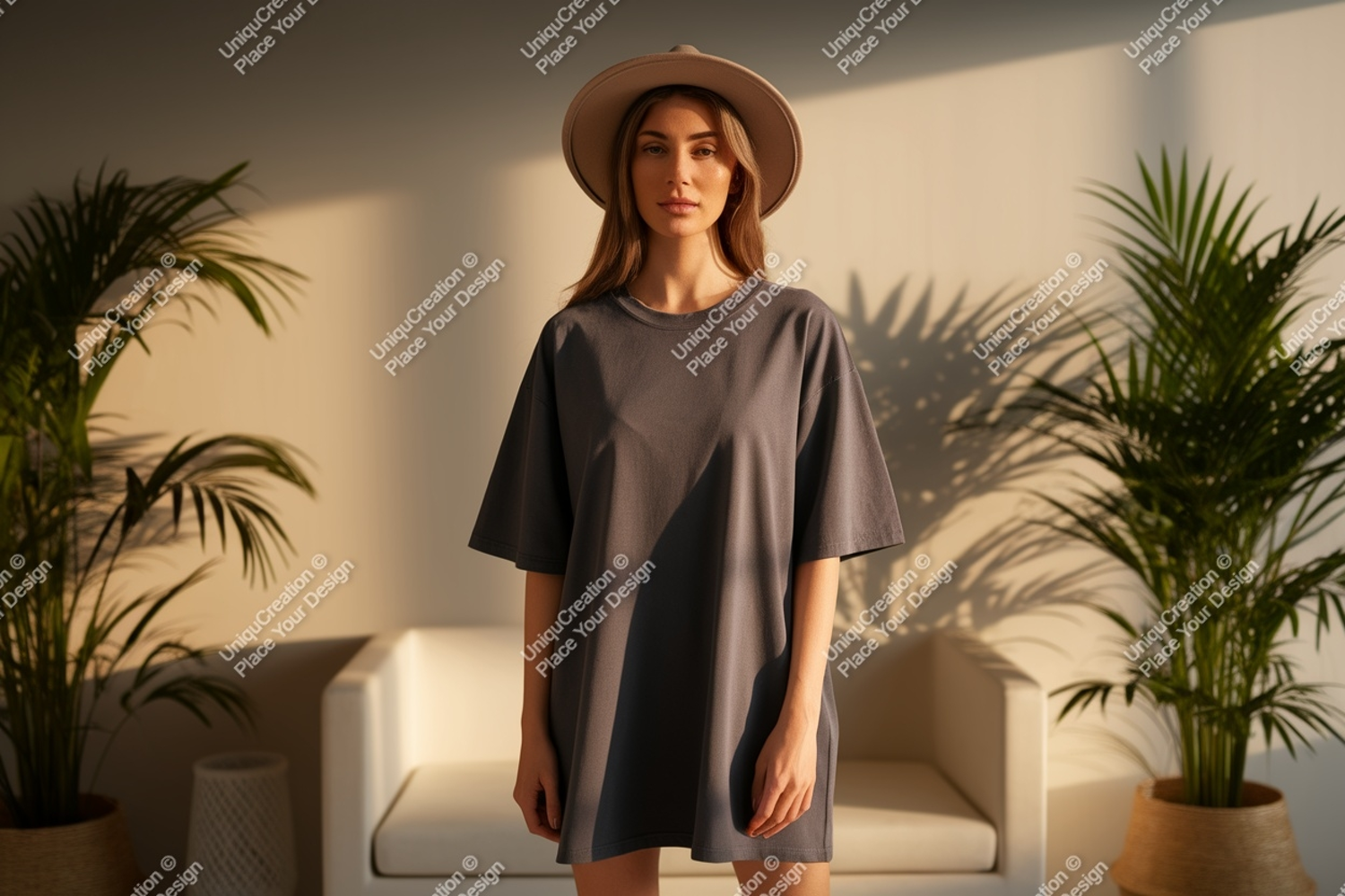 Similar Design Products to Woman wearing grey t shirt and hat image