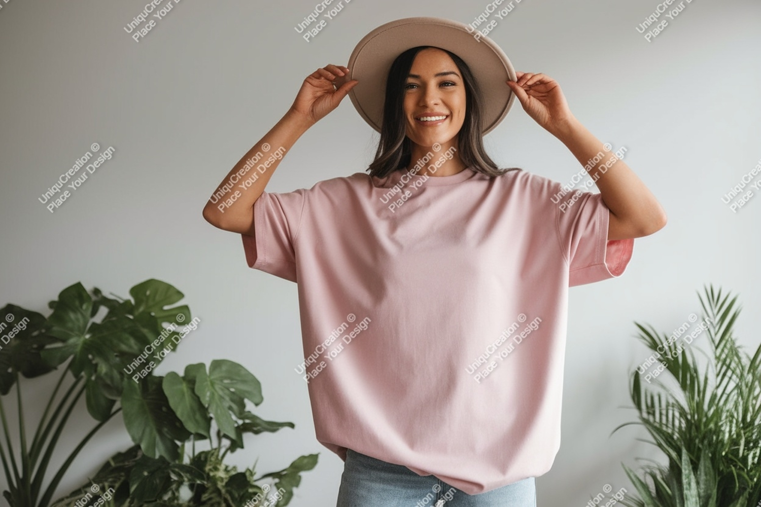 Fashion Shirt Pink Casual Mockup Woman Hat Plants T Indoor