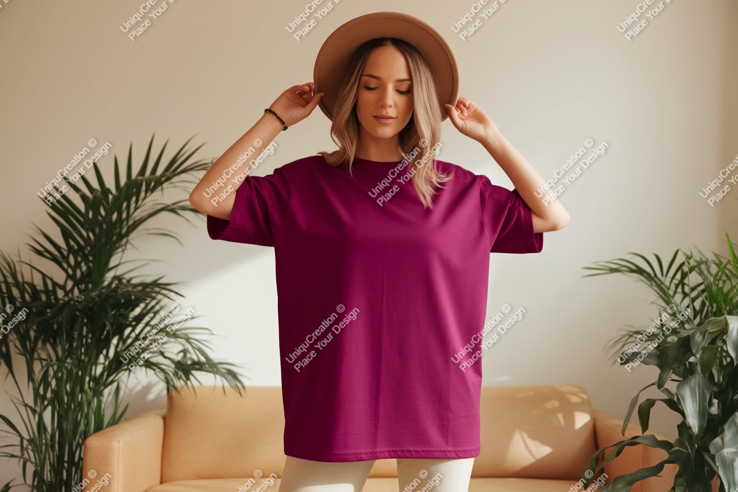 Fashion Shirt Casual Mockup Woman Hat Magenta Plants T Indoor