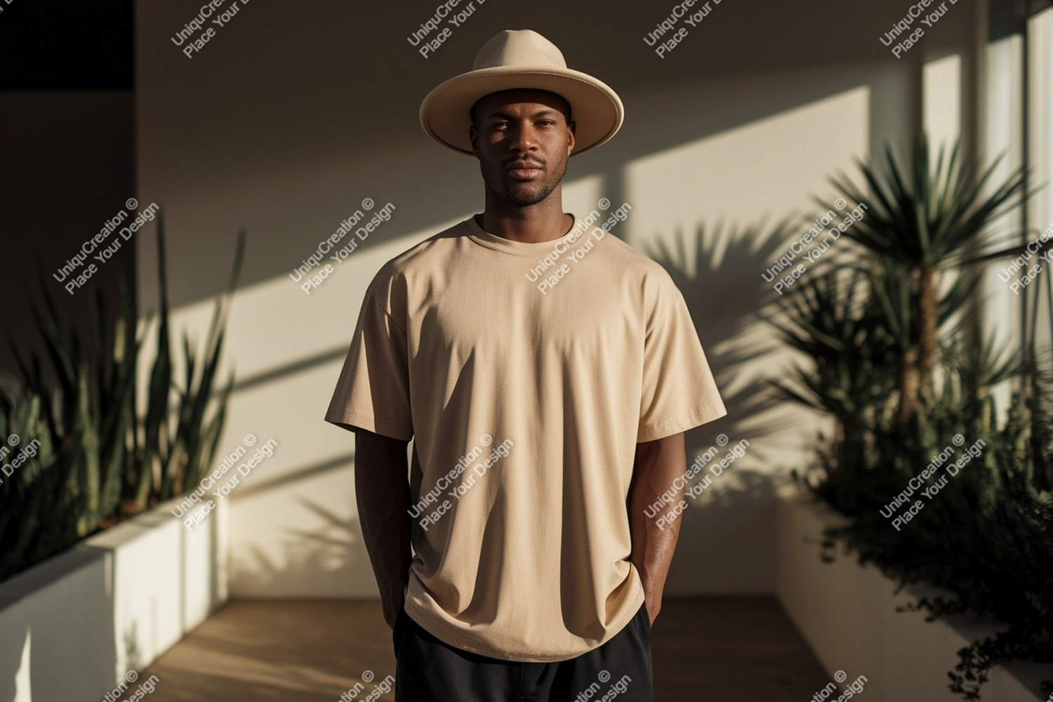 Fashion Man Shirt Clothing Mockup Outdoor Hat Portrait Tan T