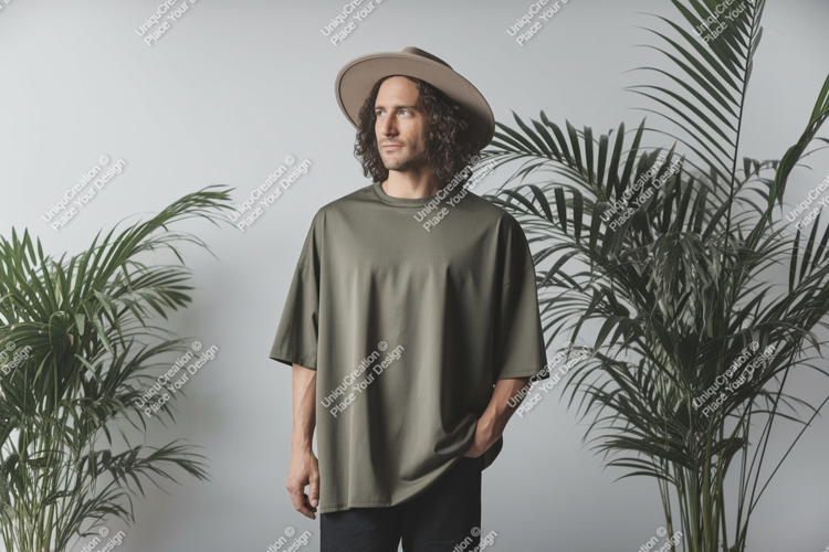 Fashion Man Shirt Casual Green Mockup Hat Olive Plants T