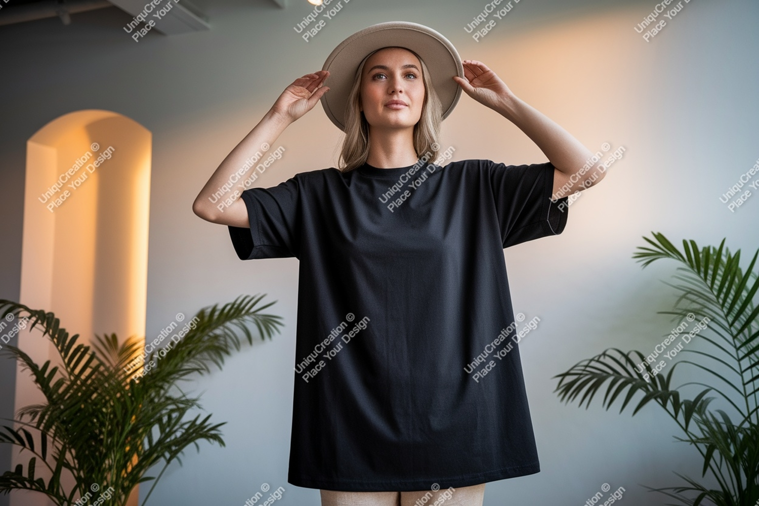 Fashion Black Style Shirt Clothing Casual Mockup Woman Hat T