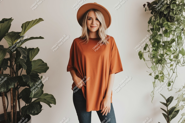 Fashion Shirt Casual Mockup Woman Hat Plants T Terracotta