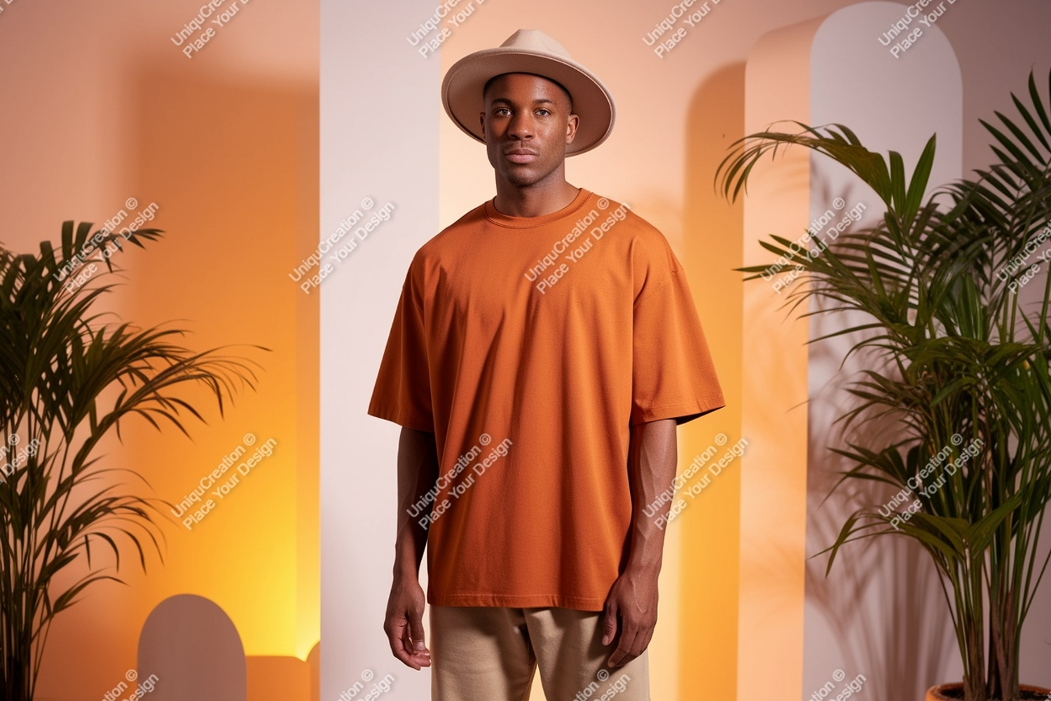 Fashion Man Shirt Casual Mockup Studio Orange Hat Plants T