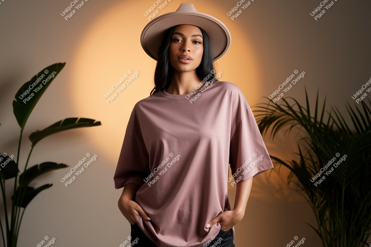 Fashion Shirt Pink Mockup Woman Studio Hat Plants T Indoor