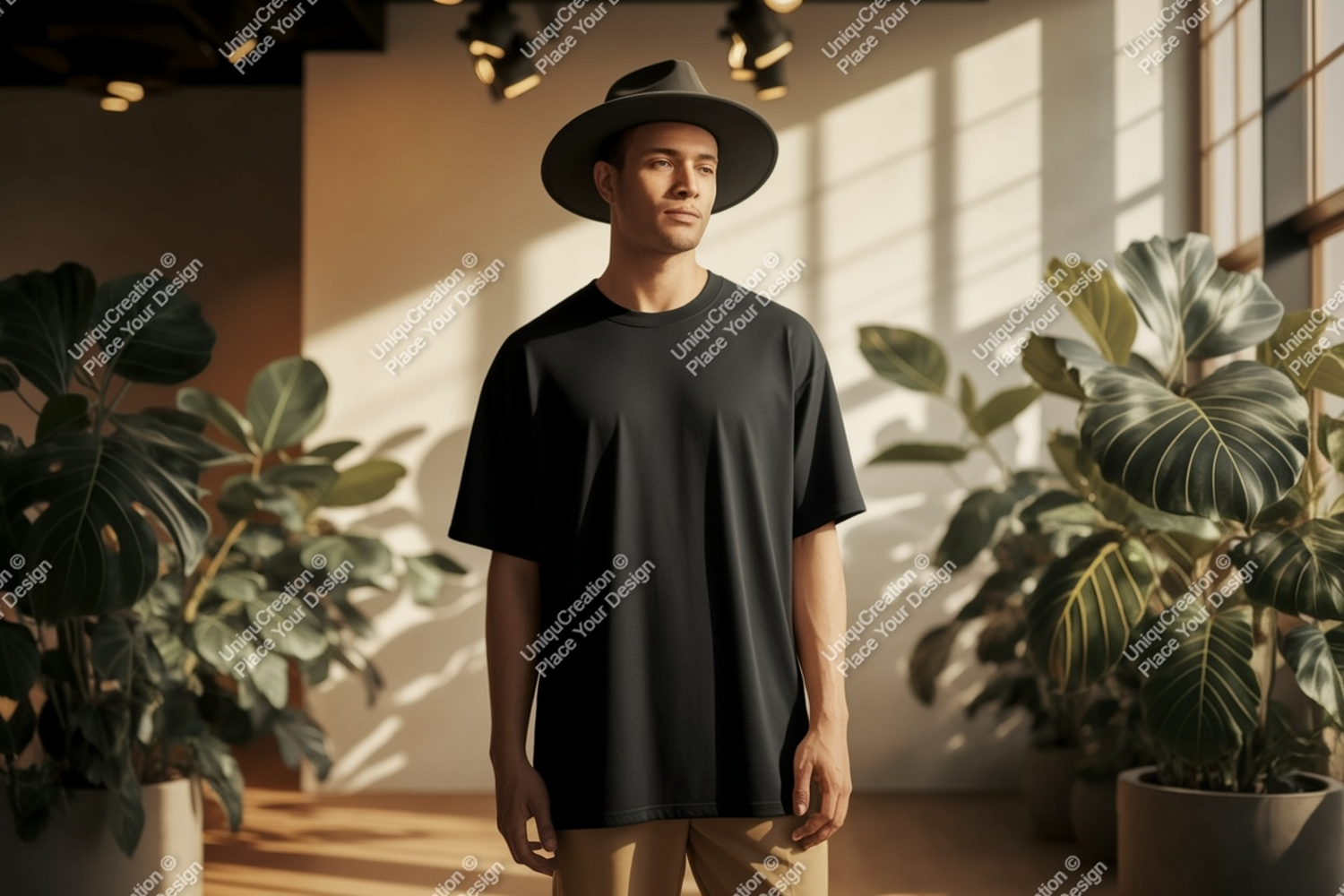 Man Black Shirt Mockup Studio Hat Plants T Indoor