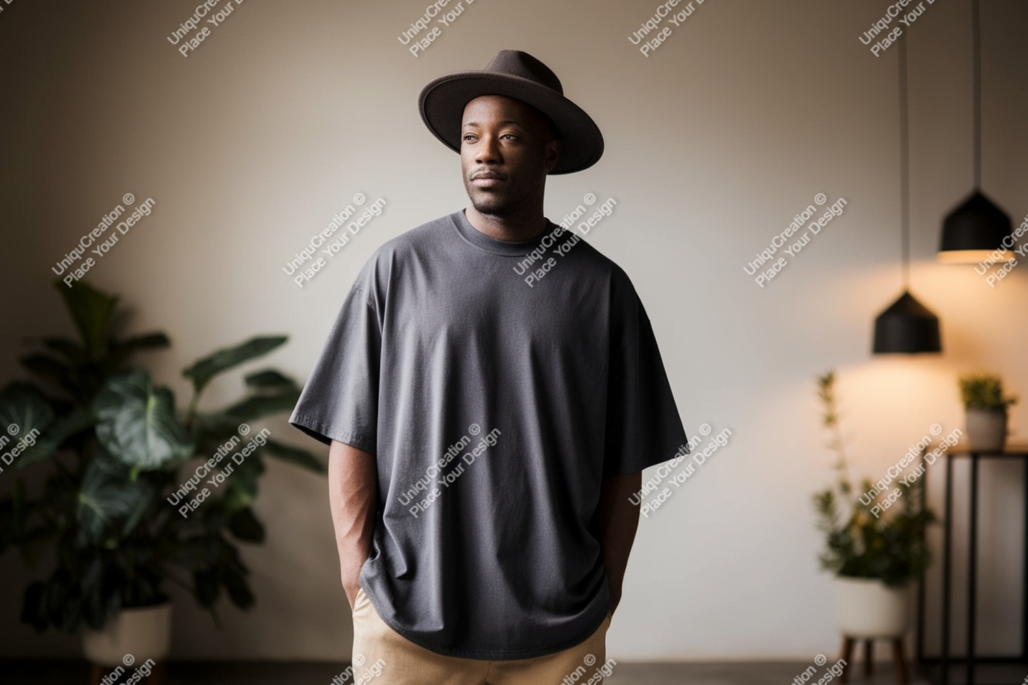 Modern Stylish Man Shirt Casual Dark Hat Grey T Indoor
