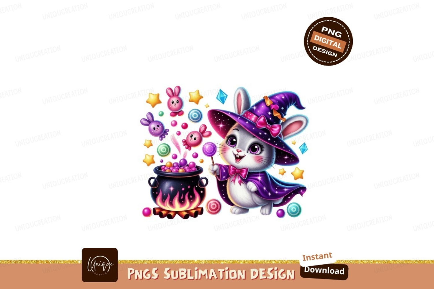 Similar Design Products to Whimsical witch bunny with cauldron and candy lollipop