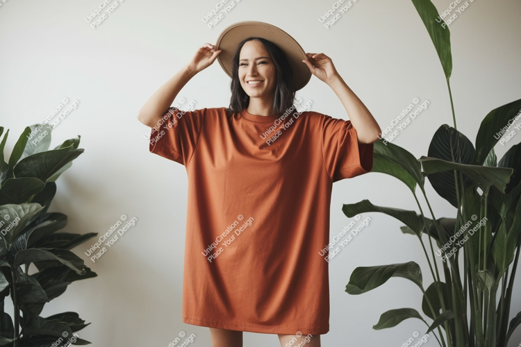 Fashion Shirt Casual Mockup Woman Hat Plants T Indoor Terracotta
