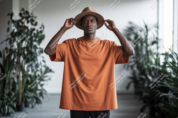 Fashion Man Shirt Mockup Orange Hat Portrait Plants T Indoor