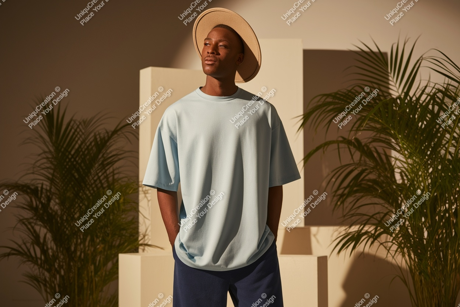 Fashion Man Summer Style Shirt Casual Mockup Blue Hat T