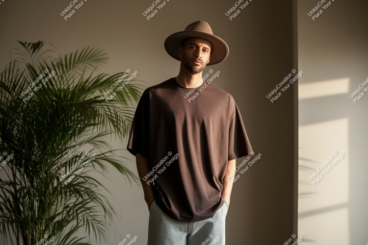 Light Fashion Man Shirt Casual Brown Plant Hat T Indoor