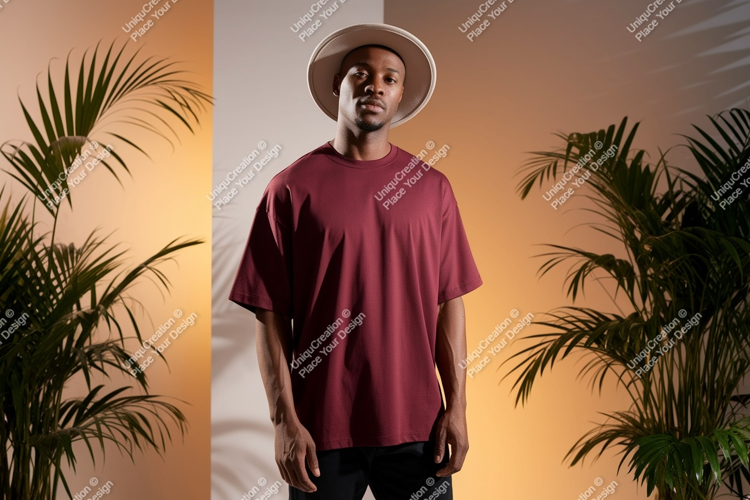 Fashion Man Shirt Casual Mockup Studio Hat Plants T Maroon
