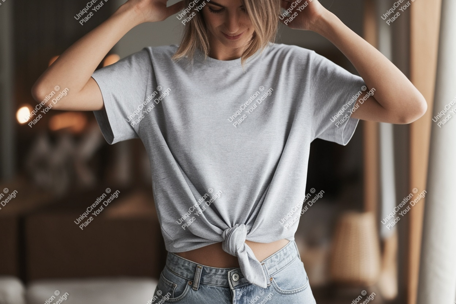 Similar Design Products to Woman wearing grey t shirt mockup image