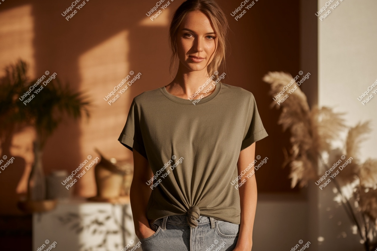 Fashion Shirt Clothing Casual Green Mockup Apparel Woman Olive T