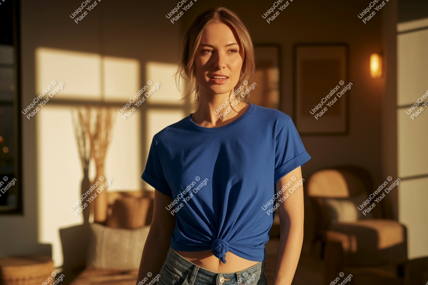 Similar Design Products to Woman wearing blue t shirt mockup image