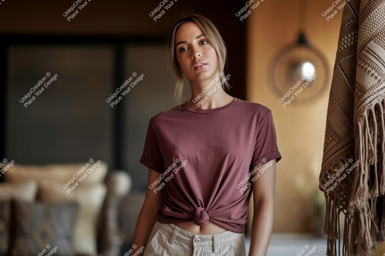Fashion Style Shirt Clothing Casual Mockup Woman T Indoor Maroon
