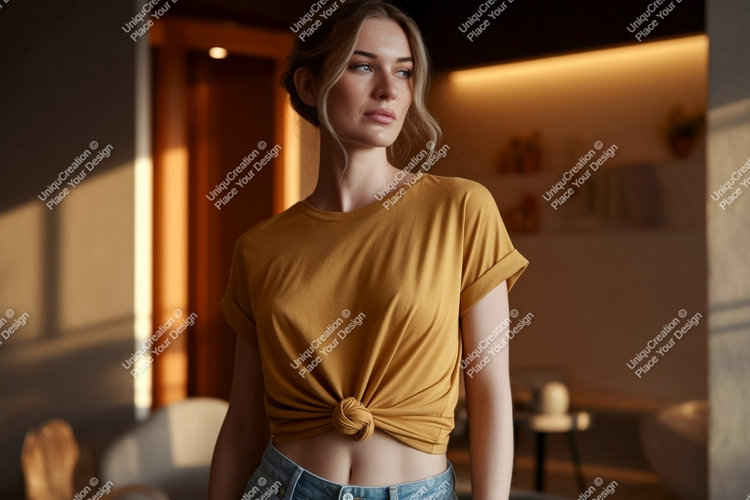 Fashion Style Shirt Clothing Casual Mockup Apparel Woman Yellow T