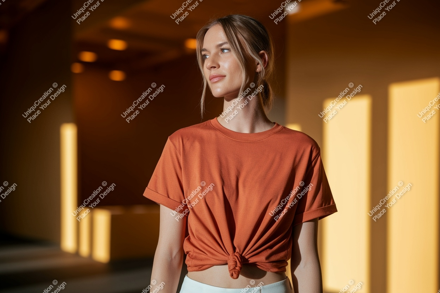 Fashion Style Shirt Clothing Casual Mockup Apparel Woman Orange T