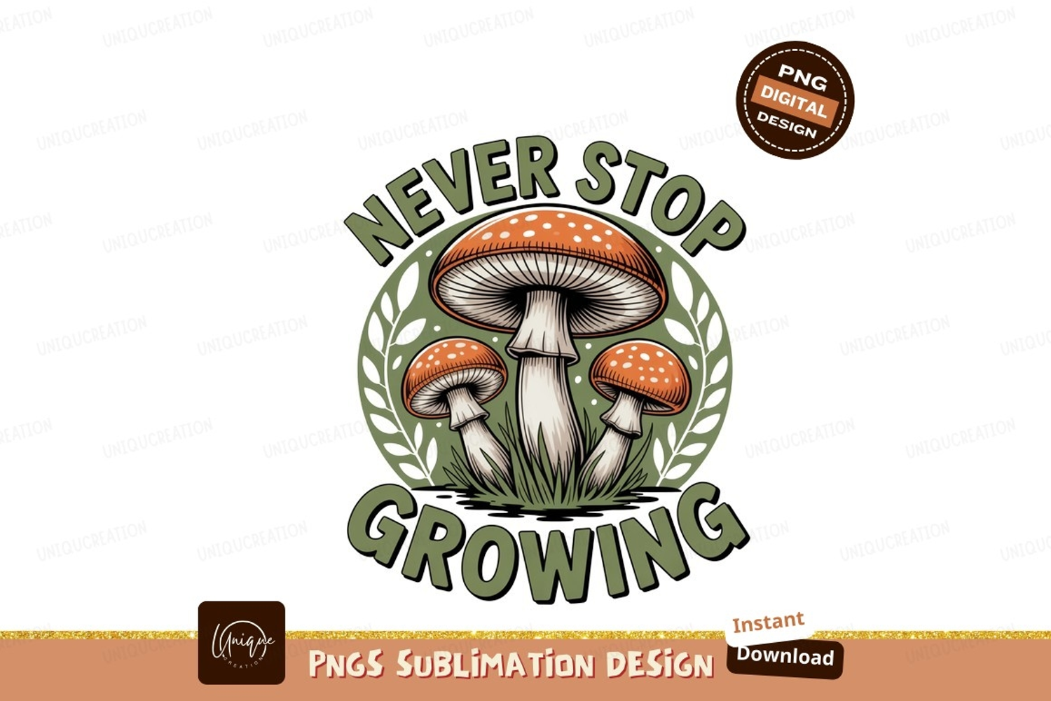 Similar Design Products to Orange mushrooms growing with green text white grass
