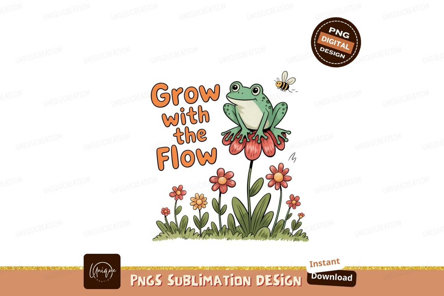 Similar Design Products to Frog flower bee growth text green
