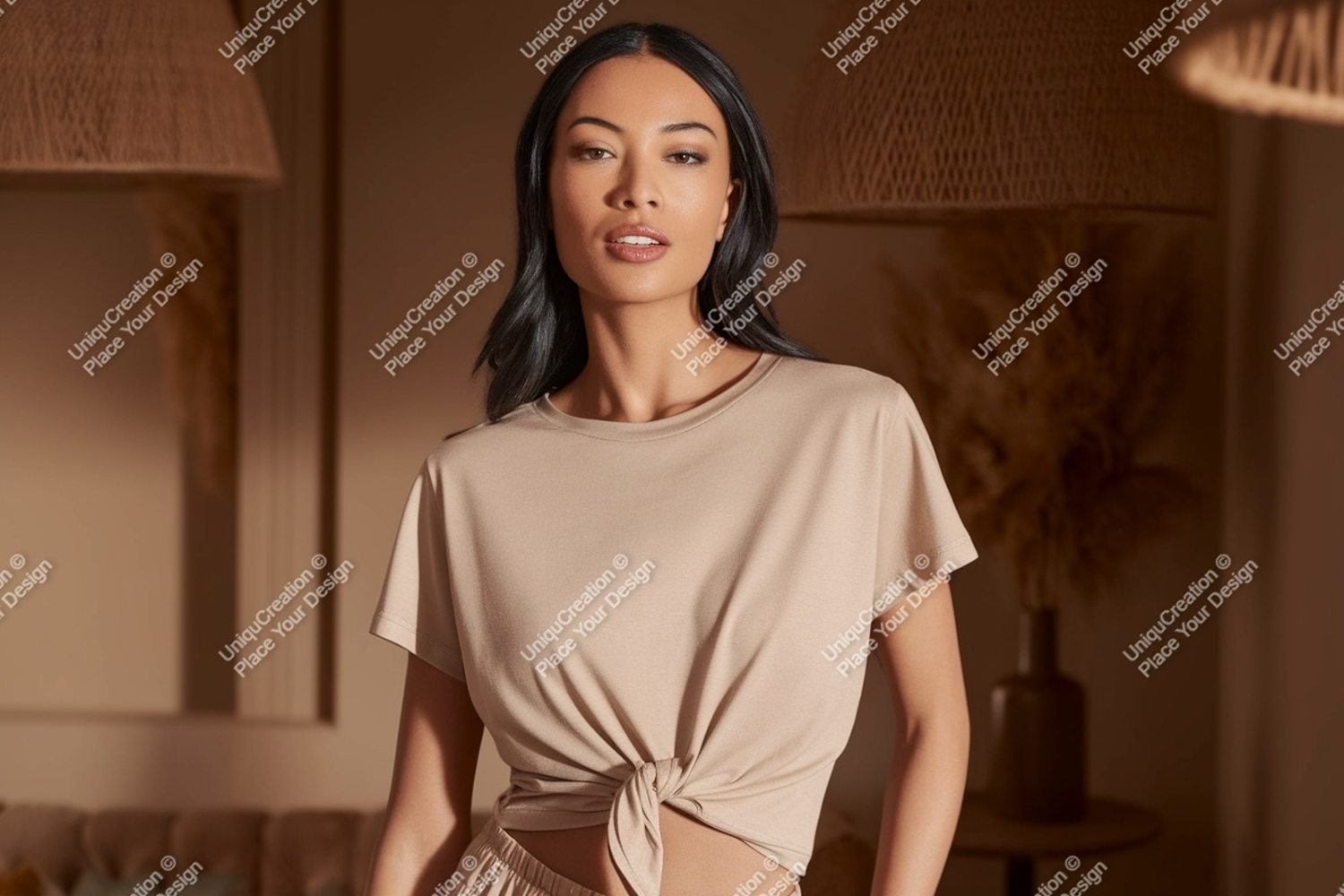 Fashion Shirt Clothing Casual Mockup Apparel Woman Beige T Tied