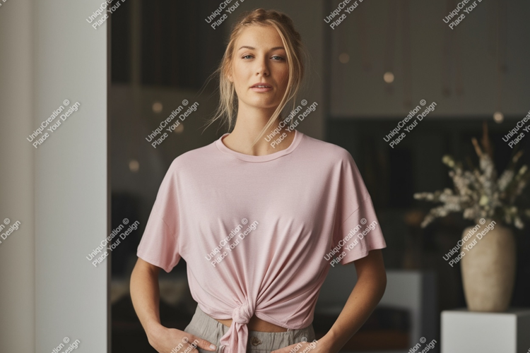 Fashion Style T-shirt Pink Clothing Casual Mockup Apparel Woman Outfit