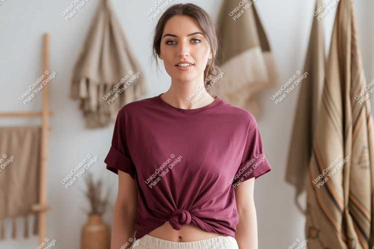 Fashion Style Shirt Clothing Casual Mockup Apparel Woman Burgundy T
