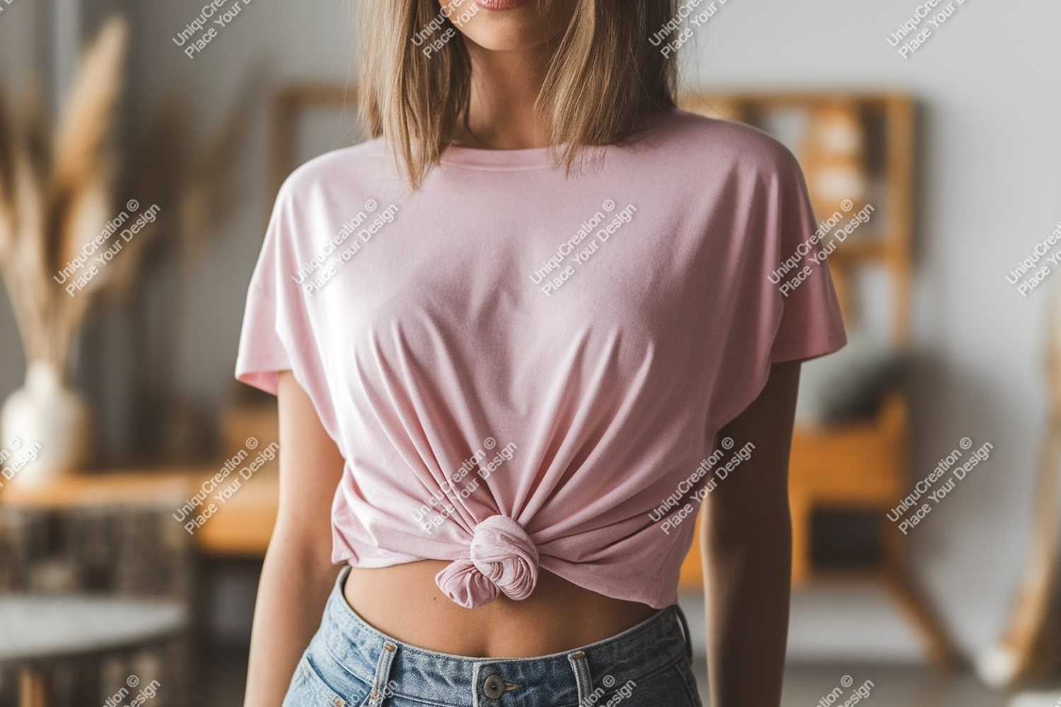 Shirt Pink Clothing Casual Mockup Jeans Female Denim T Knot