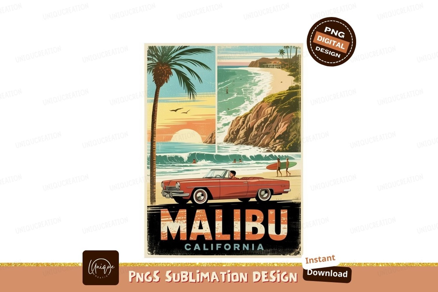 Similar Design Products to Vintage Malibu Beach Scene With Convertible California