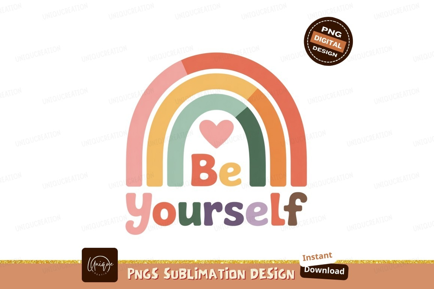 Retro Rainbow Heart Be Yourself Graphic image example image 1